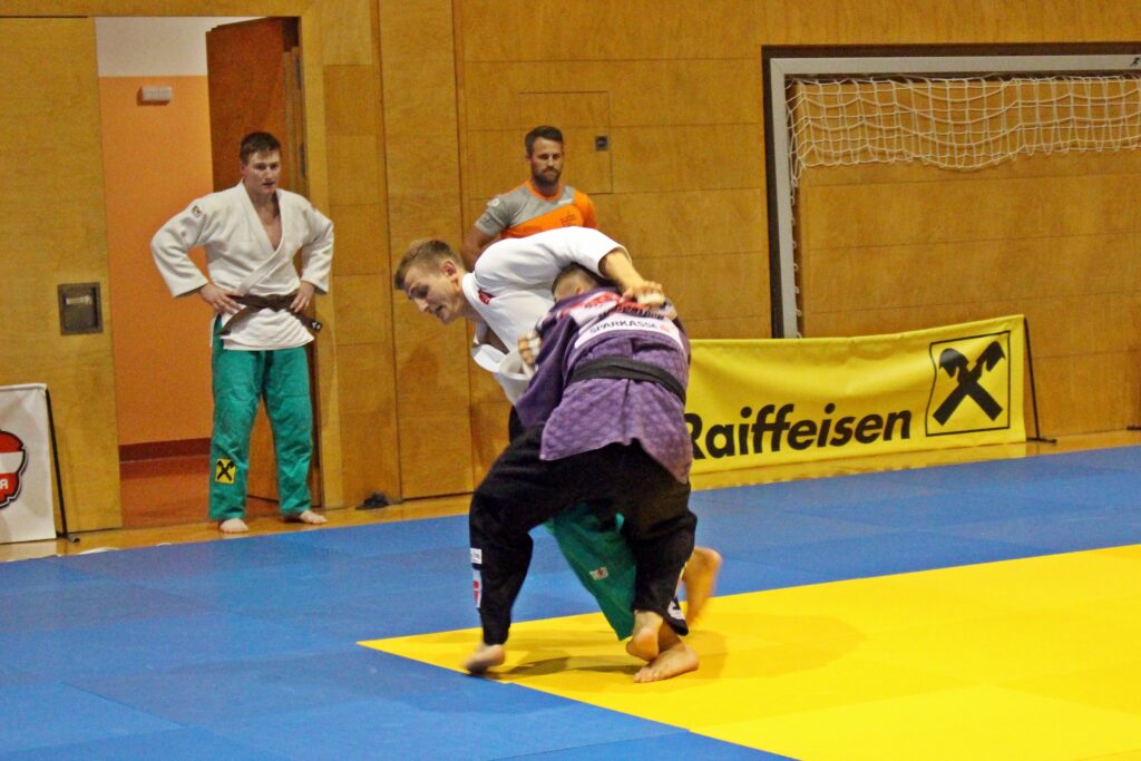 Bis 66 kg dominierte der Vorarlberger Adamyan Vache im Dienste der Flachgauer die beiden Kämpfe gegen Bernhard Lang und siegte zweimal mit Ippon.