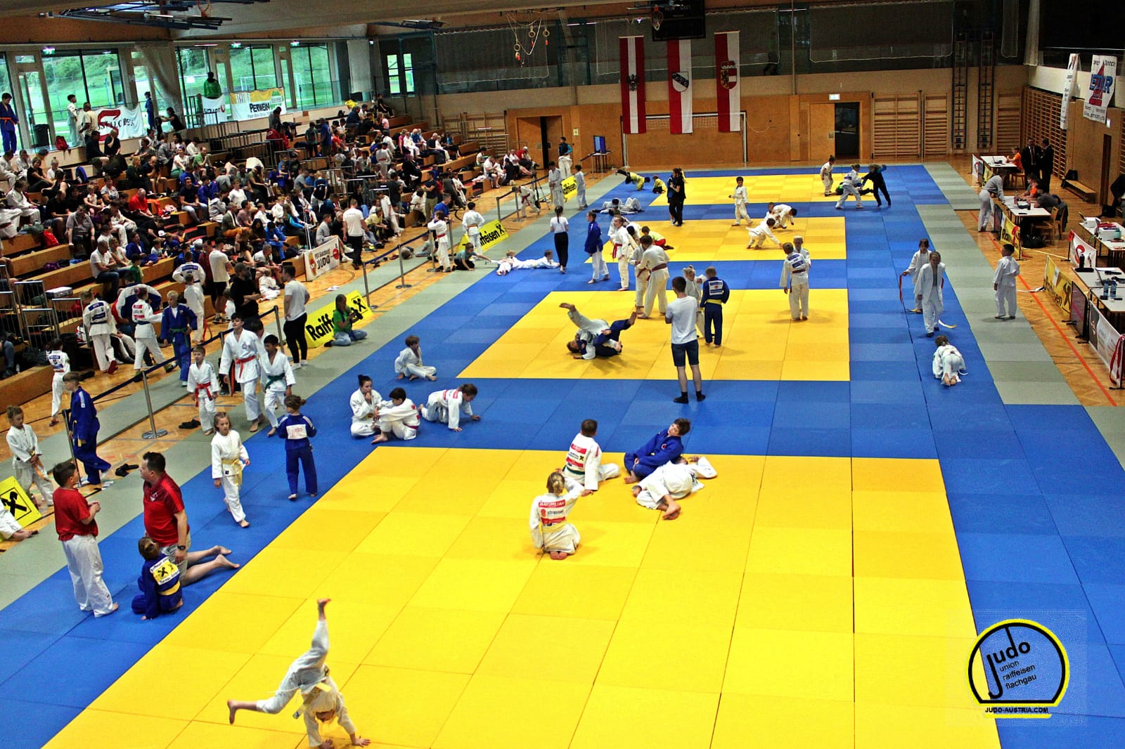 Am Freitag, den 13. Juni, stand die Gerhard-Dorfinger-Halle in Straßwalchen wieder einmal ganz im Zeichen des Judo: Die Judo Union Raika Flachgau lud zur Doppelrunde in der Schülerliga und Landesliga gegen den JC Hallein Tennengau. Die Veranstaltung wurde feierlich eröffnet von Marcus Halbig-Merkatz, dem Vorsitzenden des Sportausschusses der Marktgemeinde Straßwalchen, der in seiner Begrüßung die Bedeutung des Sports für die Kinder und die tolle Nachwuchsarbeit der